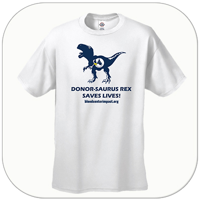 This fun dinosaur shirt adds some personality to your blood donor wardrobe. Legacy branding. 100% PRE-SHRUNK COTTON.