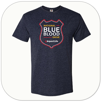 "Blue Blood Drive" navy t-shirt displays design for National Law Enforcement Day. 50% preshrunk cotton, 50% polyester. Limited quantities available.