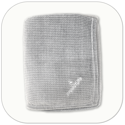 Cuddle up with this plush fleece blanket. Features a herringbone pattern in gray and a white embroidered ImpactLife logo in the corner. Fully hemmed for durability. 100% polyester. 60" H X 42" W.