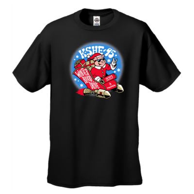 KSHE 2023 Winter Blood Drive t-shirt featuring KSHE radio station mascot "Sweetmeat" in a sleigh. 100% pre-shrunk cotton. Limited quantities available.