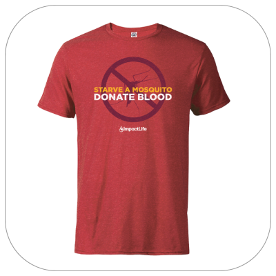 "Starve a Mosquito - Donate Blood" in red heather tee. This soft, playful summer t-shirt is bound to be a go-to favorite. Pre-shrunk cotton blend - 50% polyester/50% preshrunk cotton. Expected fit is true to size. SMALL SHIRTS ONLY.