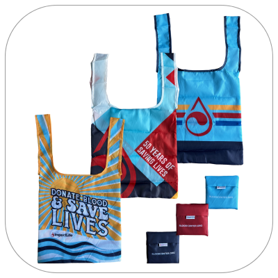 Set of three reusable grocery bags that fold into attached pouch for easy storage. You'll receive one of each design. 100% Ripstop Polyester. 24.5" X 13.25"