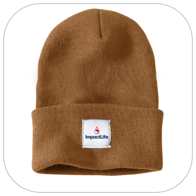Stay warm with this cozy fold-up cuff beanie. Featuring an ImpactLife patch on the cuff. 100% acrylic rib knit. One size fits most.