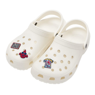 This 3 pack of charms can decorate your waterproof clog shoes or beach bag for all occasions. Includes one of each design: "Blood Donor" badge of honor, Charlie the Mascot, and an ImpactLife tie-dye tee. PVC material. Shoes shown not included.