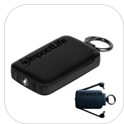 2,000 mAh. Compact and lightweight. USB C and Lightening charging cables are connected at sides. LED light indicator lets signals the remaining batter life. LED lighting function provides torch and SOS light options. Attached carabiner. Comes with USB charging cable. 1.75" X 2.75" Points to increase to 1,000 on Sept 10